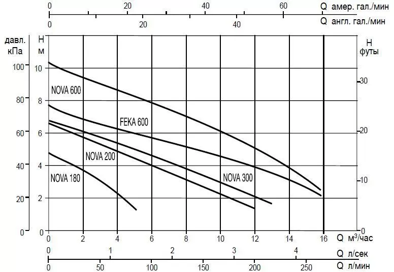 Графические характеристики дренажного насоса NOVA UP 600MA