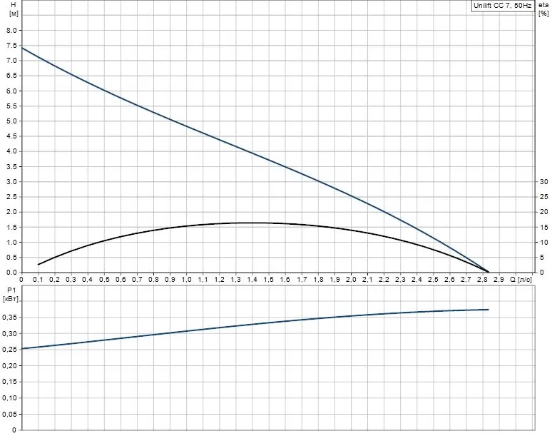 Одноступенчатый погружной дренажный насос Grundfos UNILIFT CC 7 A1 с вертикальным напорным патрубком. Служит для перекачивания чистой и загрязненной воды без волокнистых включений с твердыми частицами до 10 мм, отведения воды из затапливаемых помещений, стиральных машин, моечных агрегатов и душа. А так же откачивания воды из рек, прудов и различных емкостей.