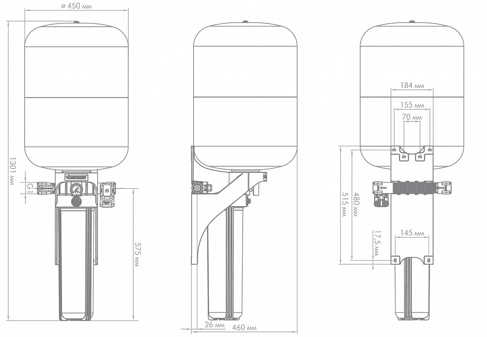 Джилекс "КРАБ" (100 литров) - Комплексное Решение Автоматизации на Баке с Торцевым смещенным соединением. Предназначен для автоматического управления включением и выключением электронасосов, поддержания заданного давления в системах водоснабжения и предварительной фильтрации воды.
