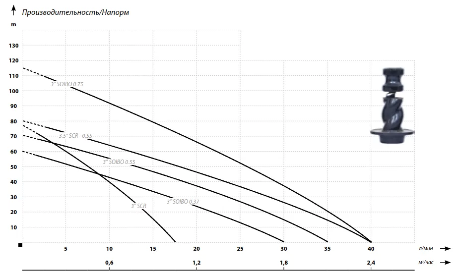 Скважинный винтовой насос SQIBO представляет собой надежное решение для водоснабжения, обеспечивающее эффективную работу в различных условиях. С мощностью 550 Вт и максимальным напором до 70 метров он способен обеспечить надежное водоснабжение на значительные расстояния. Максимальный расход воды составляет 2.1 м³/час, что делает его подходящим выбором для многих бытовых и коммерческих приложений.