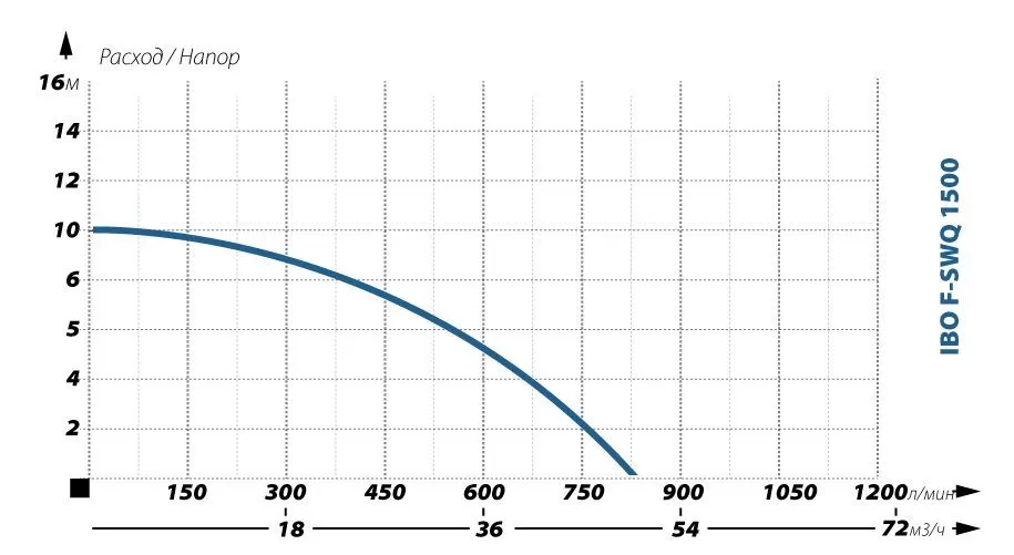 Графические характеристики дренажного насоса IBO F-SWQ 1500