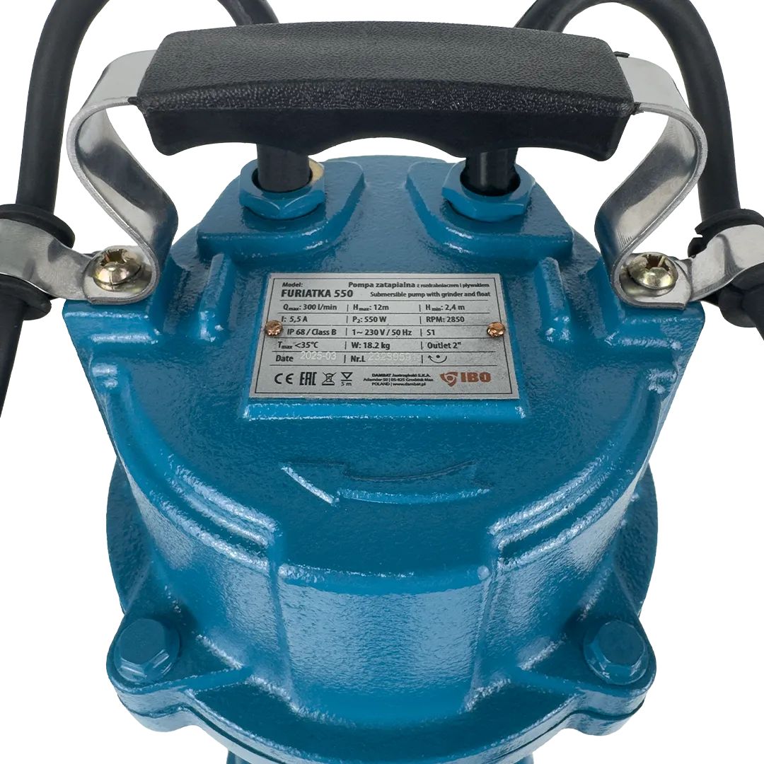 Фекальный насос IBO FURIATKA 550 обладает сбалансированными характеристиками, напор насос в максимальном значении равен 12 метрам, а производительность 18 м³/час. Насос отлично справляется со своими задачами благодаря мощному электродвигателя в 550 Вт. Пропуск частиц у насоса для фекальной канализации 35 мм. IBO FURIATKA 550 оснащен чрезвычайно эффективной системой измельчения винтового типа, данная система сводит к минимуму риск засорения всасывающего отверстия насоса. Для обеспечения бесперебойной работы насосы оснащены защитой от перегрузки, установленной на кабеле. Данная защита срабатывает при полном заклинивании вала насоса. В случае полного заклинивания вала насоса, попадания камня или твердых включений в рабочий механизм насоса защита остановит насос. Чугунная конструкция делает насосы устойчивыми к механическим повреждениям и химической коррозии. Фекальный насос IBO FURIATKA 550 оснащен поплавковым выключателем, который обеспечивает автоматическую работу устройства, а разъем насоса позволяет соединить напорный шланг с помощью хомута или быстроразъемного соединениия. Благодаря прочной конструкции и чрезвычайно эффективной системе измельчения насосы серии Furiatka являются одними из самых популярных насосов, оснащенных измельчителем на Белоруском рынке.