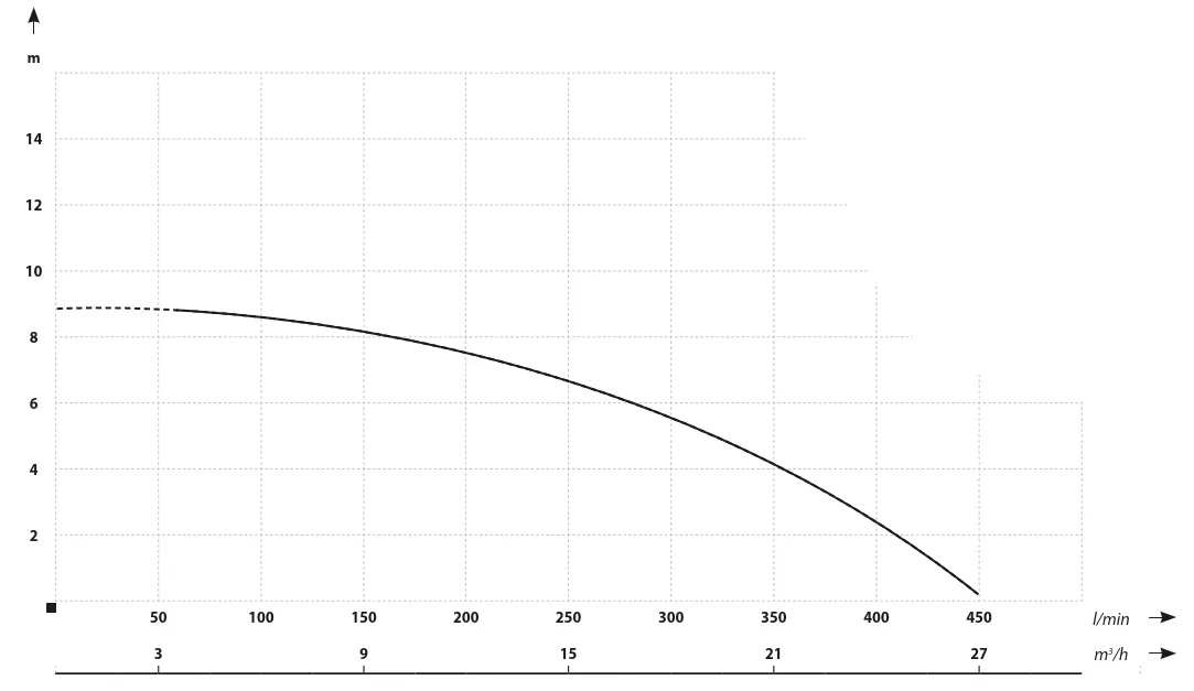 Максимальное количество метров на которое насос может поднять воду.