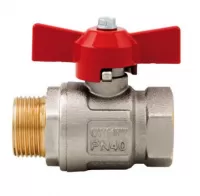 Тип  — кран шаровой бабочка, Материал корпуса — латунь, Присоединительный размер — ½" внутренняя резьба x ½" наружная резьба.