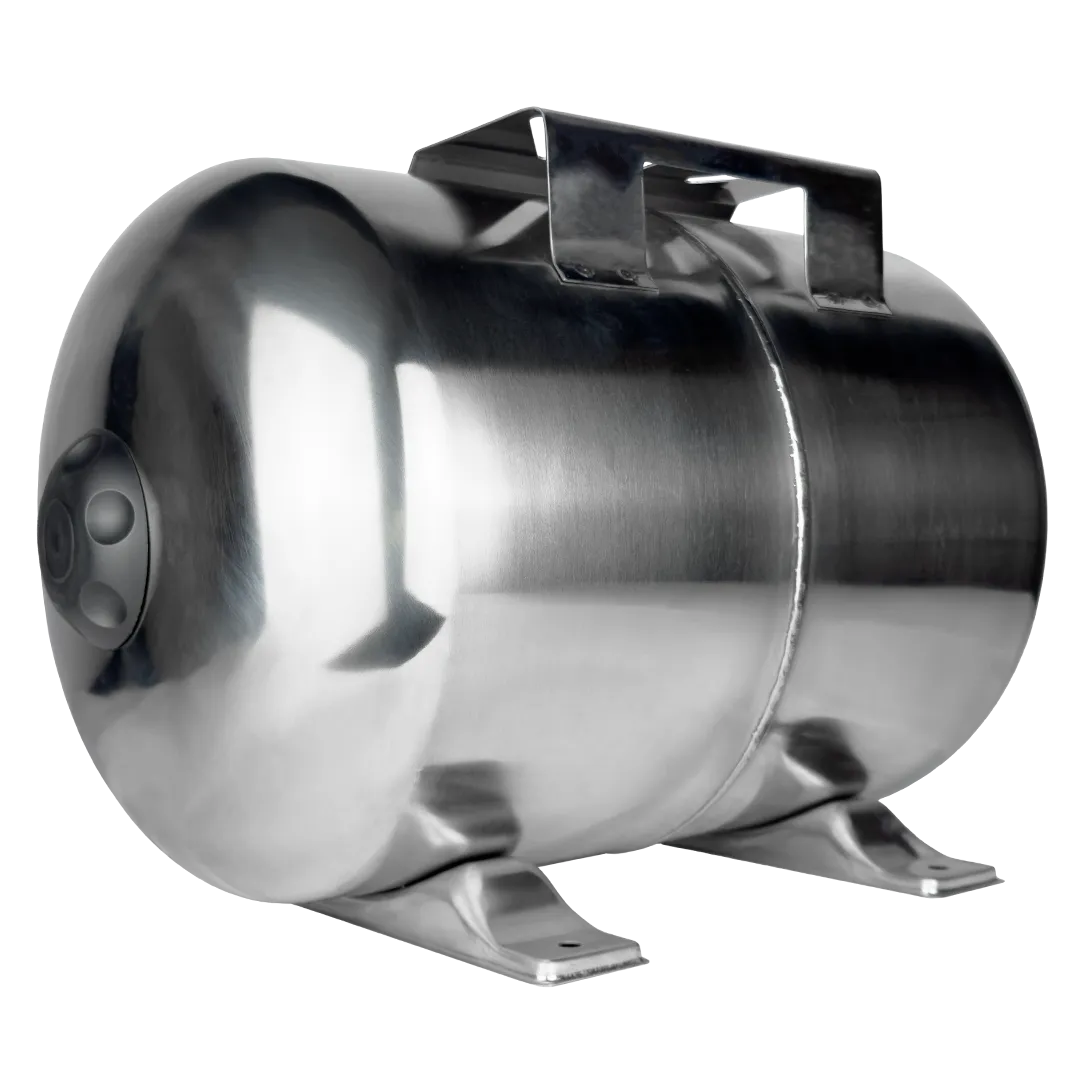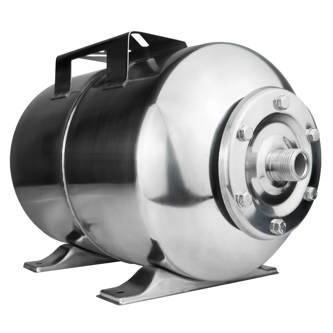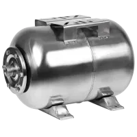 Горизонтальный мембранный бак MAXPUMP объемом 24 литра. Бак выполнен из нержавеющей стали. Мембрана бака выполнен из пищевой резины на основе бутилкаучука. Бак снабжен приварной площадкой для установки поверхностного насоса. В нижней части бака установлены металлические кронштейны с целью крепления бака к поверхности.