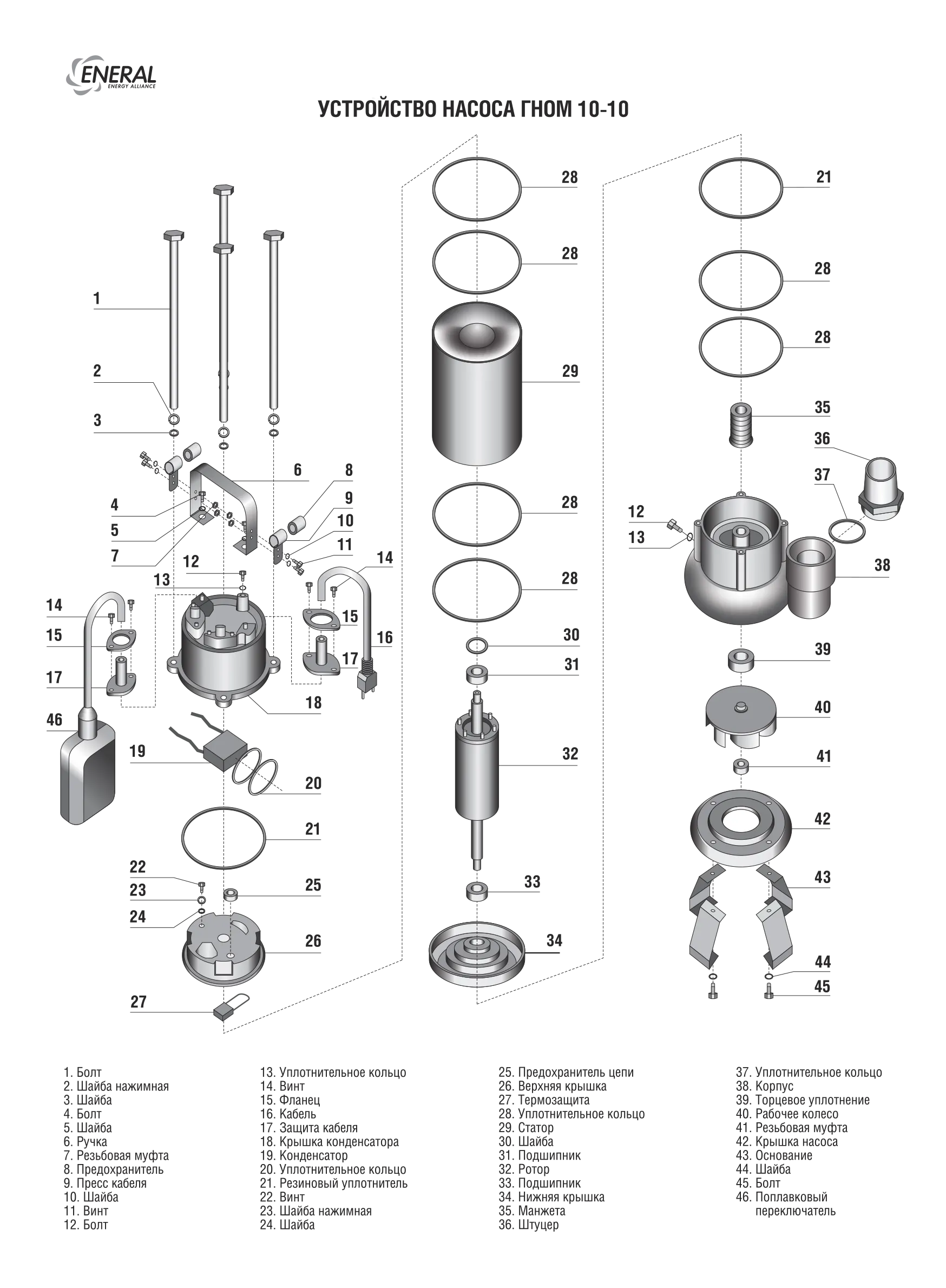 Дренажный насос ENERAL Гном 10-10 0,75кВт с поплавком