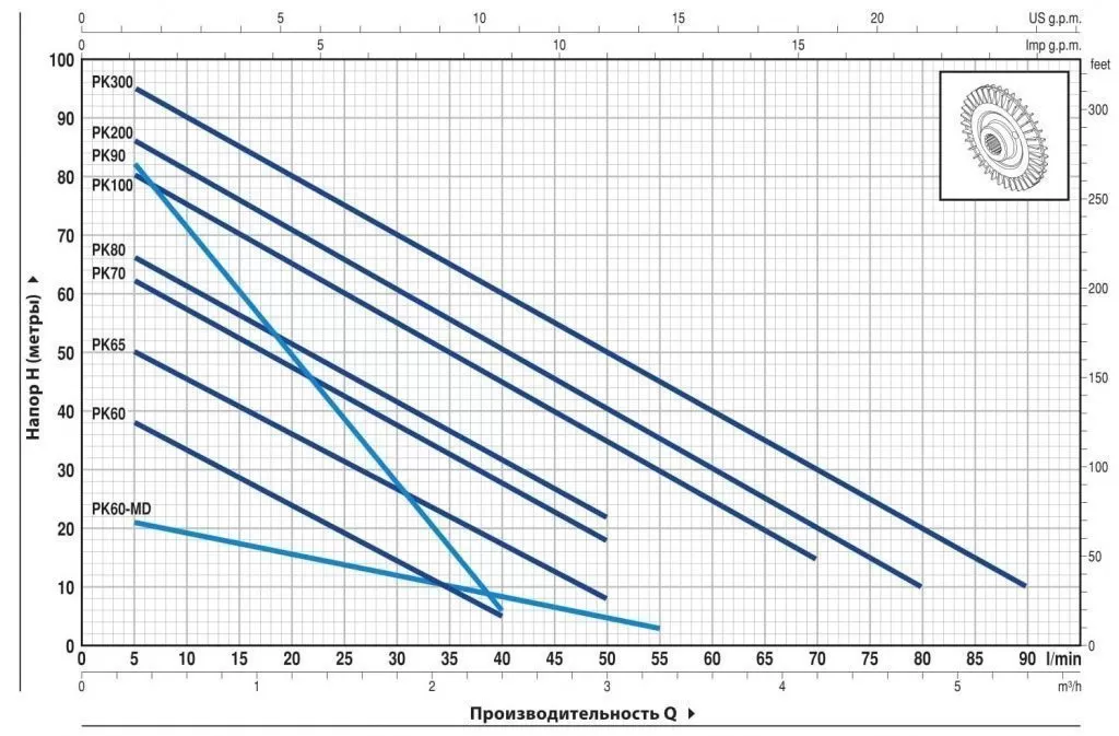 Графические характеристики PEDROLLO PK 70