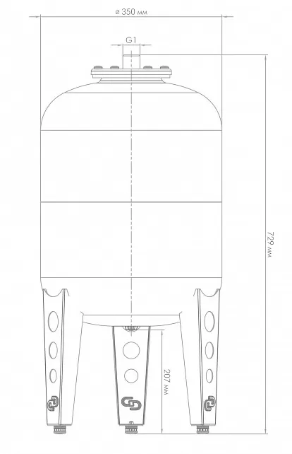 Метод установки бака вертикальный, что обеспечивает простоту и удобство процесса установки. Подключение осуществляется сверху, что также способствует легкости монтажа и обеспечивает удобный доступ к необходимым элементам. Диаметр рабочего штуцера составляет 1 дюйм, что соответствует стандартам и обеспечивает совместимость с другими элементами системы отопления.