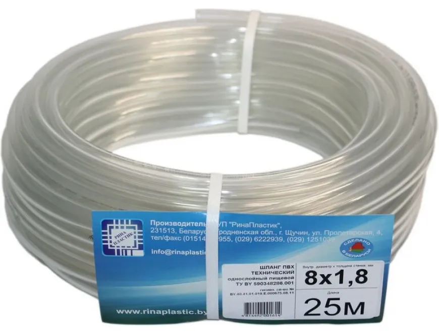 Прозрачный гибкий однослойный шланг ПВХ для различных применений в промышленности и быту, для безнапорной подачи жидкостей и газов.