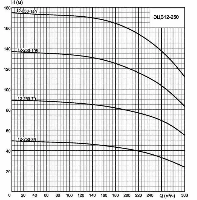 Графические характеристики ЭЦВ 12-250-35 нро