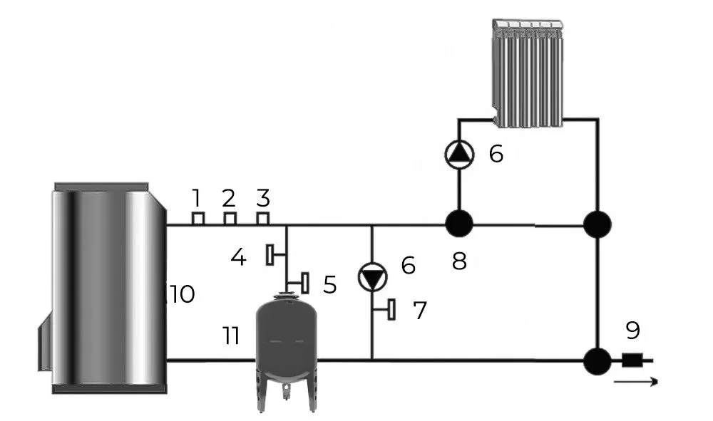 Рекомндуемая схаму установки расширительного бака для отопления ТЕПЛОКС РБ-36 л