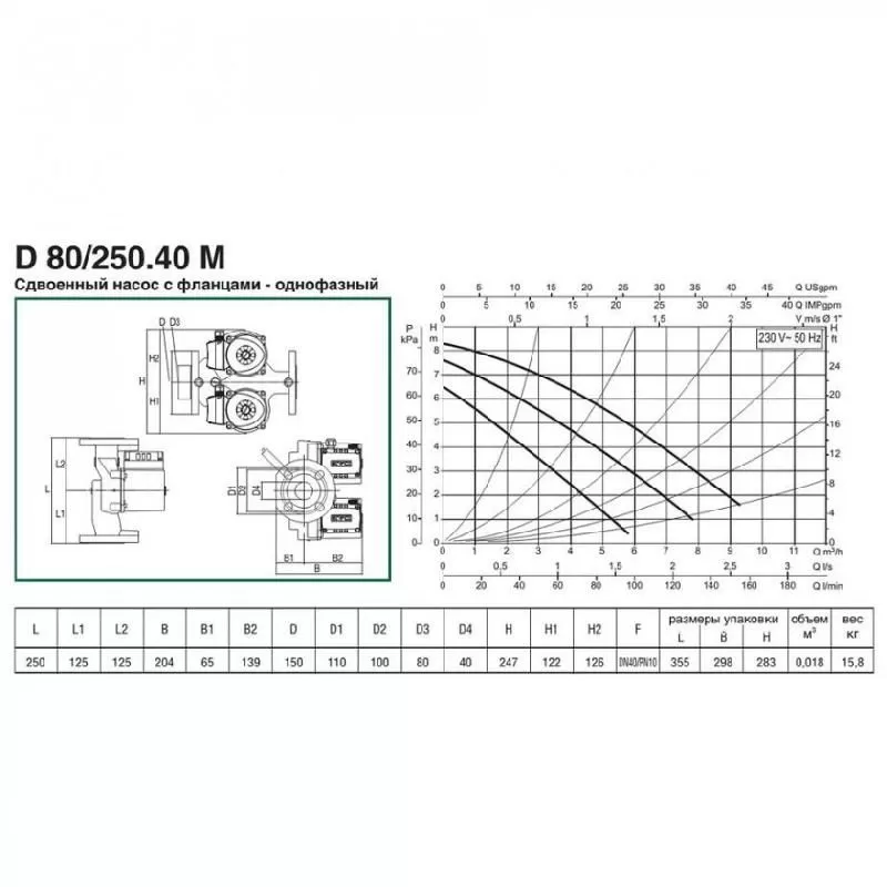 Циркуляционный насос DAB D 80/250.40 M предназначен для эксплуатации в системах отопления, где предъявляются повышенные требования к надежности. Отличительной чертой серии D является наличие второго дублирующего насоса, который автоматически включается в работу при поломке первого насоса. Таким образом в одном корпусе расположены сразу два отдельных насоса которые полностью дублируют друг друга. Присоединение насоса с помощью фланцев.
