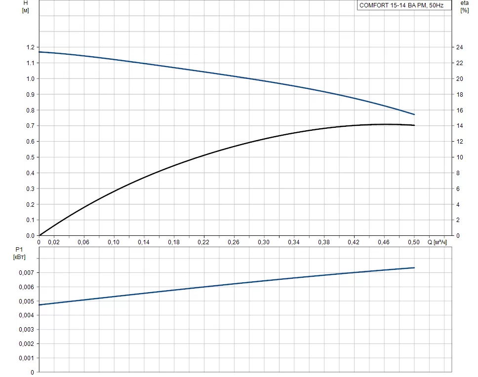 График характеристик циркуляционного насоса Grundfos COMFORT 15-14 BA PM">