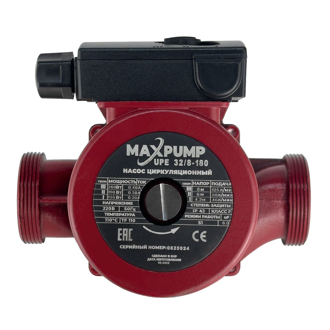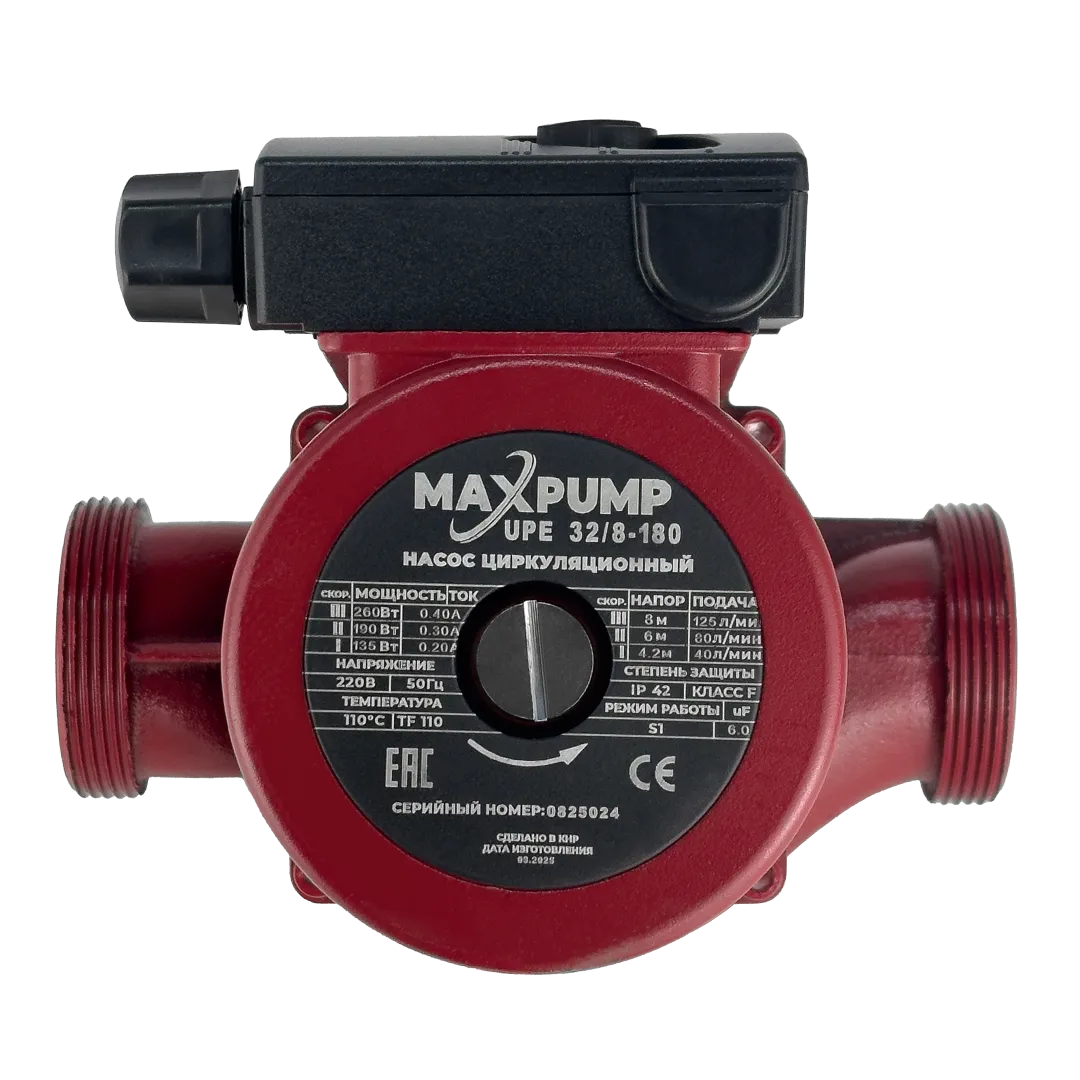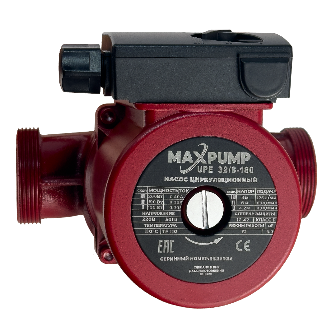 Циркуляционный насос MAXPUMP UPE 32/8-180 предназначен для обеспечения принудительной циркуляции теплоносителя в закрытых системах отопления.