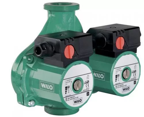 Сдвоенный циркуляционный насос WILO STAR-RSD 30/6 с мокрым ротором в общем корпусе с перекидным клапаном для установки в трубах. С ручным трехступенчатым переключением частоты вращения. Устойчивый к токам блокировки электродвигатель. Корпус насоса из серого чугуна, рабочее колесо из полипропилена, вал из нержавеющей стали с угольными подшипниками скольжения с металлической пропиткой.