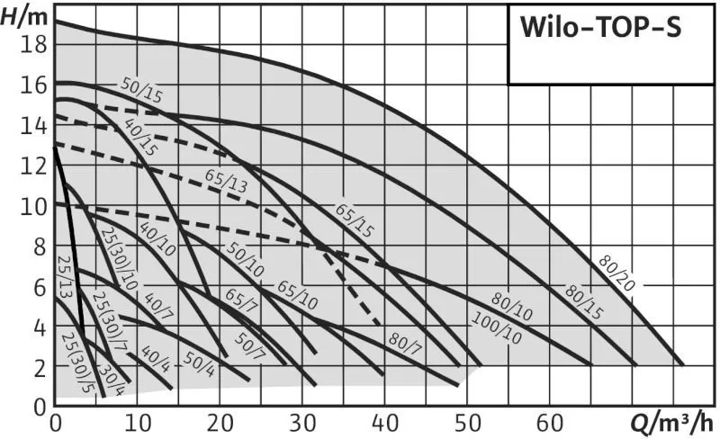 График характеристик циркуляционного насоса WILO TOP-S 50/7 DM PN6/10">
