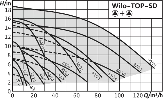 Циркуляционный насос WILO TOP-SD 50/7 EM PN6/10 применяется для любых систем отопления, систем кондиционирования, закрытых контуров охлаждения и промышленных циркуляционных систем. Не требующий обслуживания сдвоенный насос с мокрым ротором с резьбовым или фланцевым подсоединением; возможен выбор ступеней частоты вращения.
