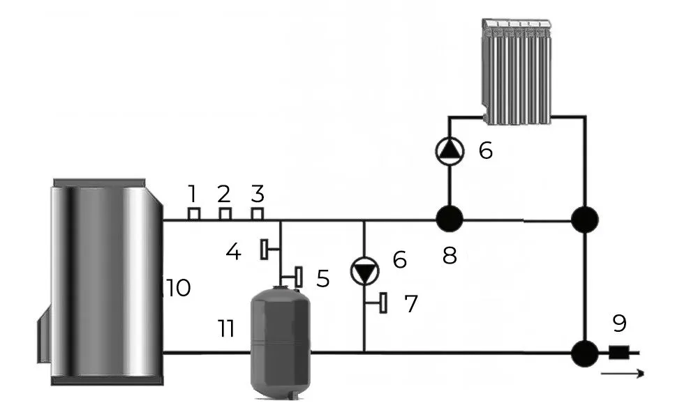Рекомндуемая схаму установки расширительного бака для отопления WESTER WRV 80 л